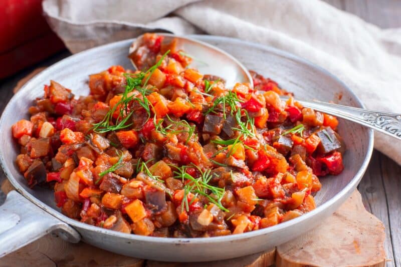 Envie d’un plat rapide, sain et facile ? Cette recette d’aubergine à la poêle, accompagnée de poivrons, tomates et oignons, est un délice. Inspirée de la cuisine méditerranéenne et de la fameuse ratatouille, elle se prépare facilement et offre des légumes fondants à souhait..