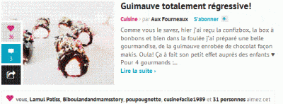 Comme vous le savez, hier j’ai reçu la confizbox, la box à bonbons et bien dans la foulée j’ai préparé une belle gourmandise, de la guimauve enrobée de chocolat façon makis. Oula! Ça à fait son petit effet auprès des enfants ♥